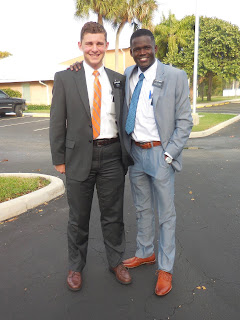 So, this week Sandra (our golden investigator) got Anti-ed (I hate Anti-Mormons, and by hate I mean moderately dislike). Woohoo, yeah sooo not excited about that... :( She texted us and told us that we didn't need to come by anymore and that she "didn't want to be a member of the Mormon", soooo that was basically the worst. On the bright side, I went on exchanges with Elder Charlton and rode my bike for the very first time since arriving in the mission! While we were out, I challenged a couple of black kids to a 2 on 2 game of ProsBall (Proselyting Basketball). We told them that if we won they had to come to church on Sunday. We totally destroyed them 5 - 2! I guess I still have my skills from my old Church ball days. Anyway, on Friday we had a Tornado watch in our county here in Florida, so Elder Murat and I went and knocked doors on Hood Street! On Saturday we had all-you-can-eat pancakes at I-HOP which were delicious. On Sunday we had a Regional Stake Conference for the South Eastern United States. Elder Rasband, Clayton, and Hales all spoke on a broadcast to 105 stakes! It was super awesome. They taught us a lot about temple attendance and how to improve our families through the gospel.
